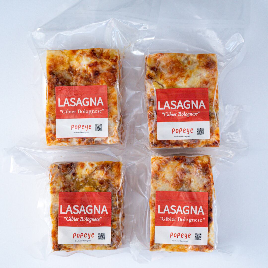 国産小麦の自家製生パスタと千葉・鴨川産の猪肉を煮込んだ特製ジビエミートソース、クリーミーなホワイトソースを重ねて焼き上げた、定番のラザニア4食セット。