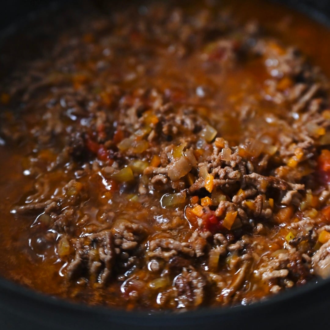 丁寧に処理された千葉・鴨川産の猪ミンチを、トマトやハーブ&スパイスで煮込み、燻製した猪ベーコンを加えて旨味と香りをプラスしました。